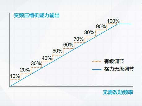 輸出能力無級調節,直流變頻壓縮機能夠在20Hz~120Hz范圍內做到數字化無級能量調節。