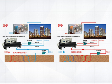 格力CVP 系列永磁同步變頻離心式熱泵機組可采用除地下水以外的其他溫度合適冷熱源,如:工業廢熱/水、電廠廢熱/ 水、城市污水/再生水、江河水、